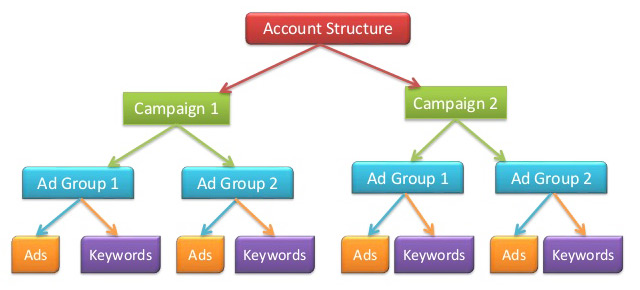 Pred izdelavo kampanj moramo določiti ključne besede (ang. Keywords), za katere želimo, da se uporabnikom iskalnika prikazujejo naši oglasi. Na podlagi ključnih besed izdelamo kampanje (ang. Campaigns) in oglasne skupine (ang. Ad Groups), znotraj posameznih oglasnih skupin pa še oglase (ang. Ads).